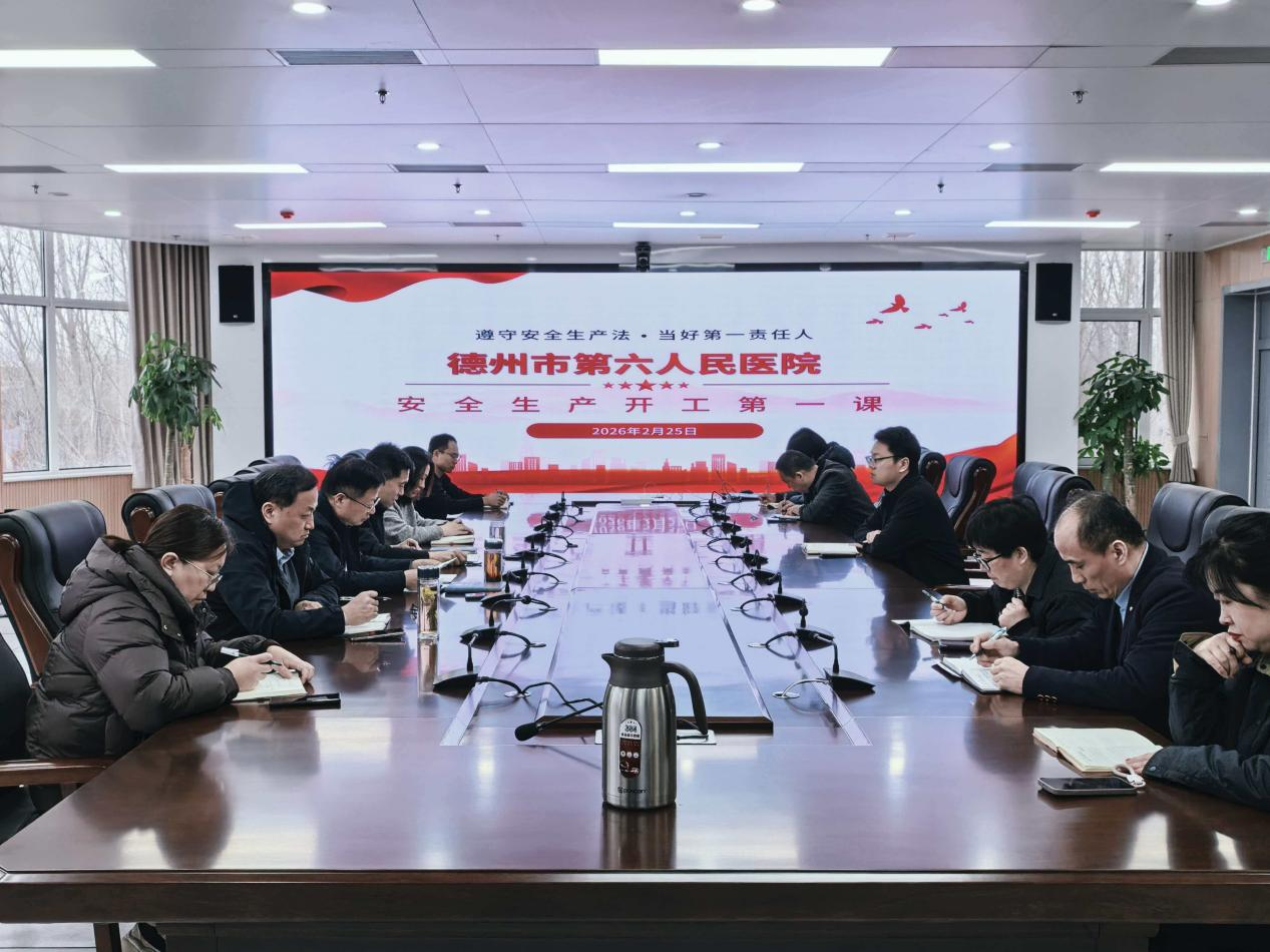 春启新程,安全先行。为深入市委、市政府及市卫健委关于春节前后安全生产工作的系列部署要求,切实压实安全生产责任,防范各类安全风险,确保节后复工复诊平稳有序,2026年2月25日,德州市第六人民医院在行政会议室召开安全生产开工第一课专题会议。医院全体干部职工参加本次会议。